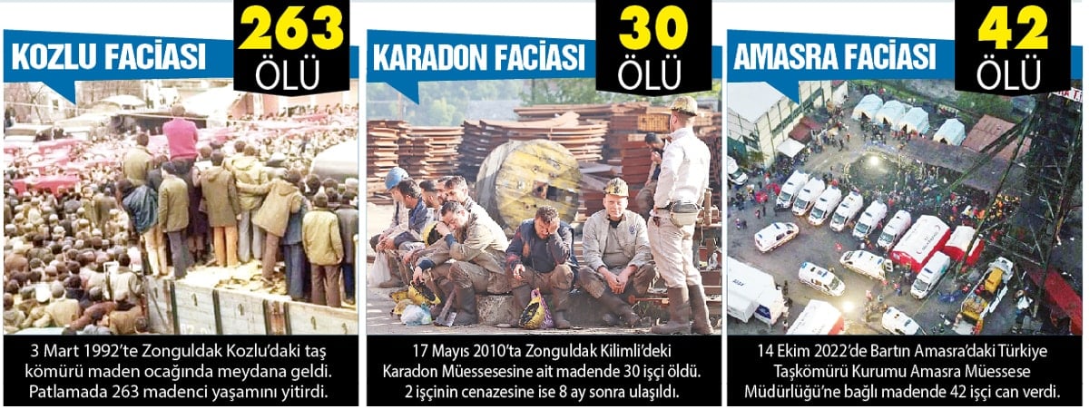 Türkiye’de 1941 yılından bu yana meydana gelen maden kazalarında 3 binden fazla işçi yaşamını yitirdi. Şimdiye kadar yaşanan bazı maden ocağı kazaları şöyle: