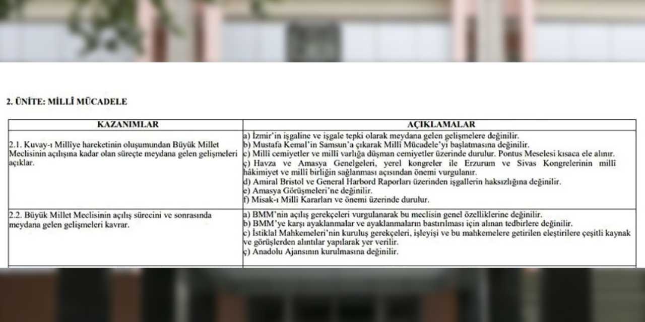 Skandal olay, “Milli Mücadele” başlıklı ikinci ünitede ortaya çıktı. “YKS 2026’ya girecek aday öğrenciler, Büyük Millet Meclisi’nin (BMM) açılış süreci ve sonrasındaki olayları kavrar” ifadesi yer aldı. 581 sayfalık raporda, BMM ifadesi kullanılırken, “Türkiye” kelimesinin silindiği görüldü.