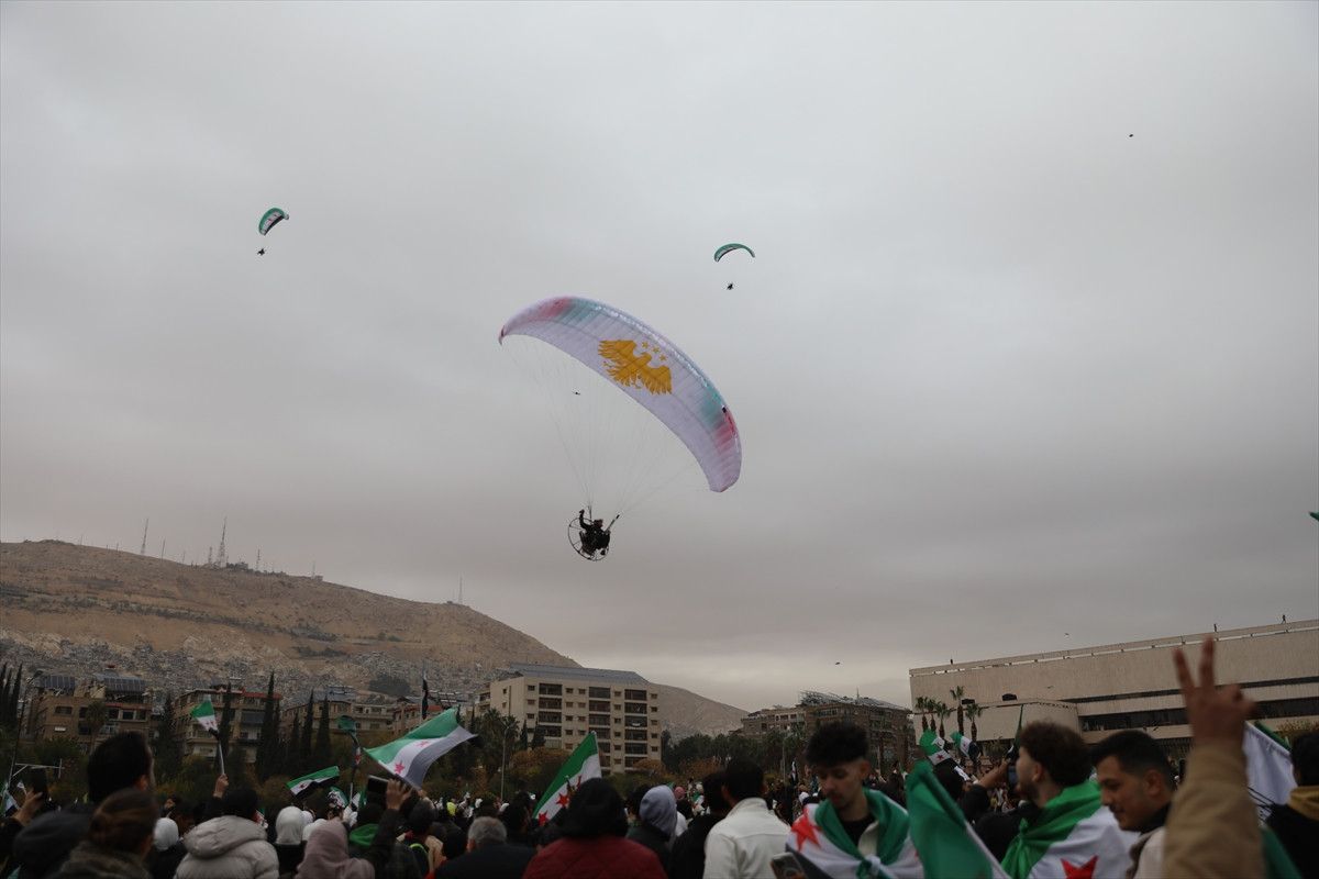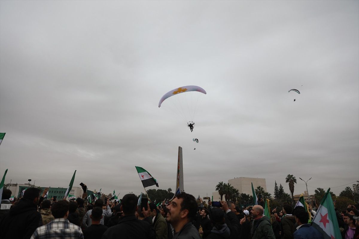 Kutlamalar kapsamında başkentteki Emevi Meydanı’nda paramotor gösterisi düzenlendi.